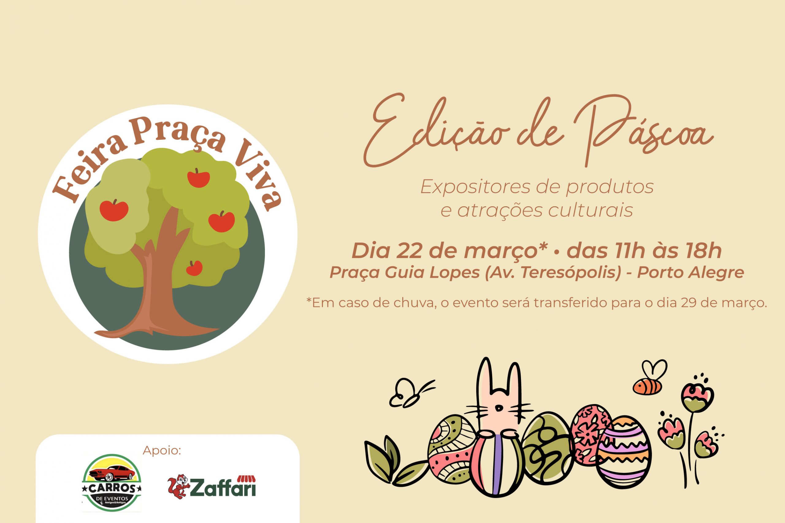 Neste domingo (22), a Praça Guia Lopes, no bairro Teresópolis, se transforma em um ponto de encontro para quem ama cultura, lazer e boas experiências. Das 11h às 18h, acontece a primeira edição de 2026 da tradicional ‘’Feira Praça Viva’’, e ela chega em clima especial com o tema de Páscoa.